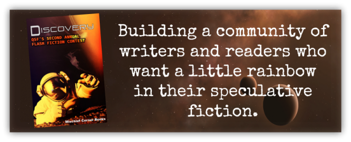 At Queer Sci Fi, we’re building a community of writers and readers who want a little rainbow in their speculative fiction. We hope you’ll join us, and maybe submit a story of your own next time!
